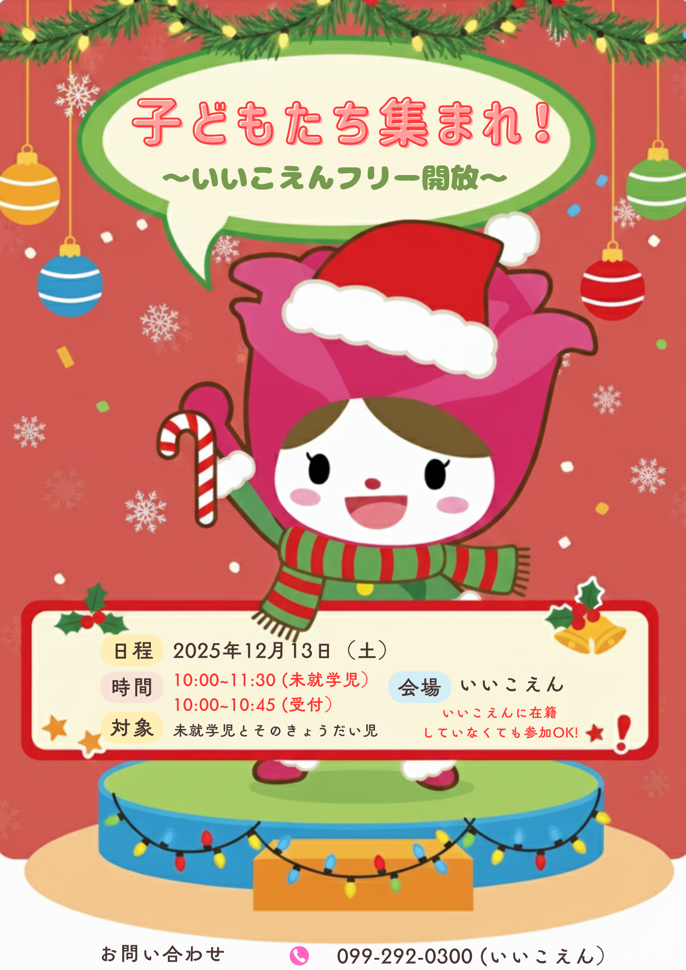 お問い合わせ先:いいこえんホームページ「お問い合わせ欄」、電話:099-292-0300